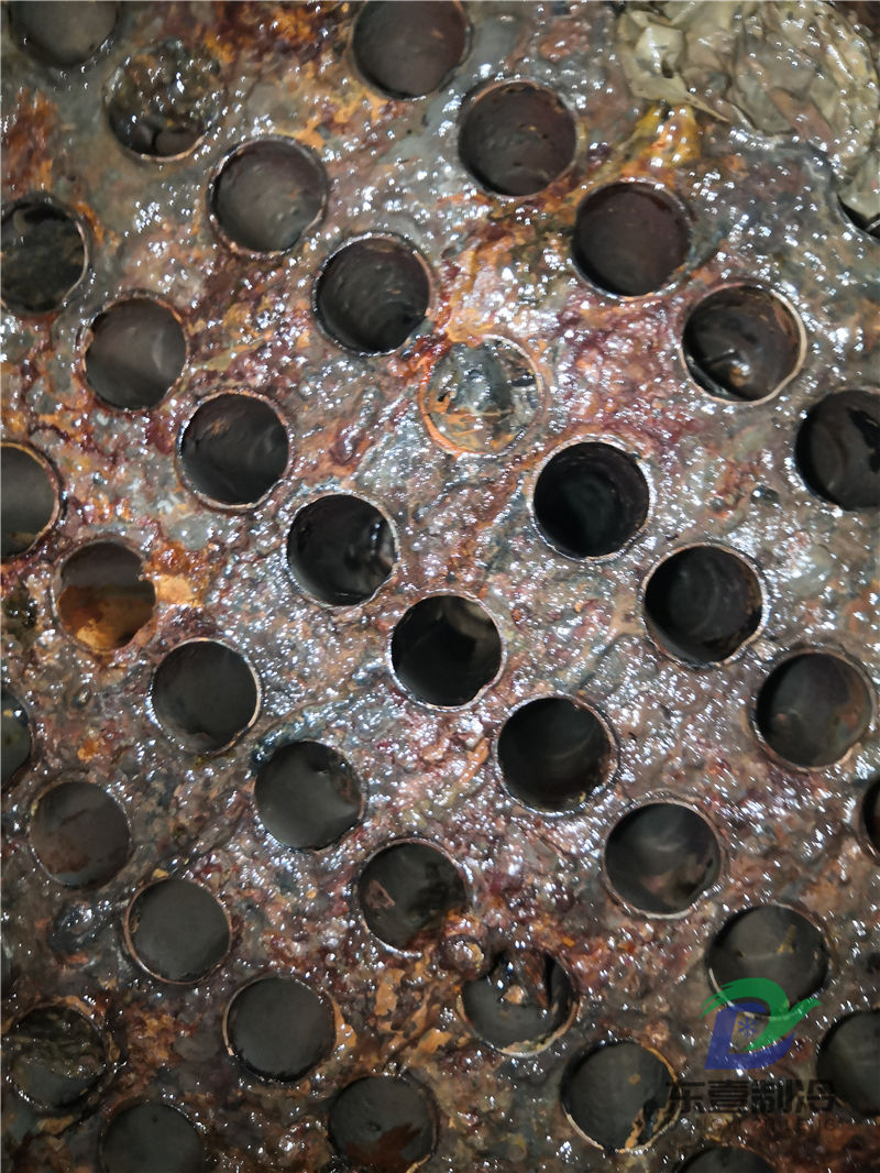 -清理管板孔內(nèi)殘膠、銹垢,檢查管板平面度。